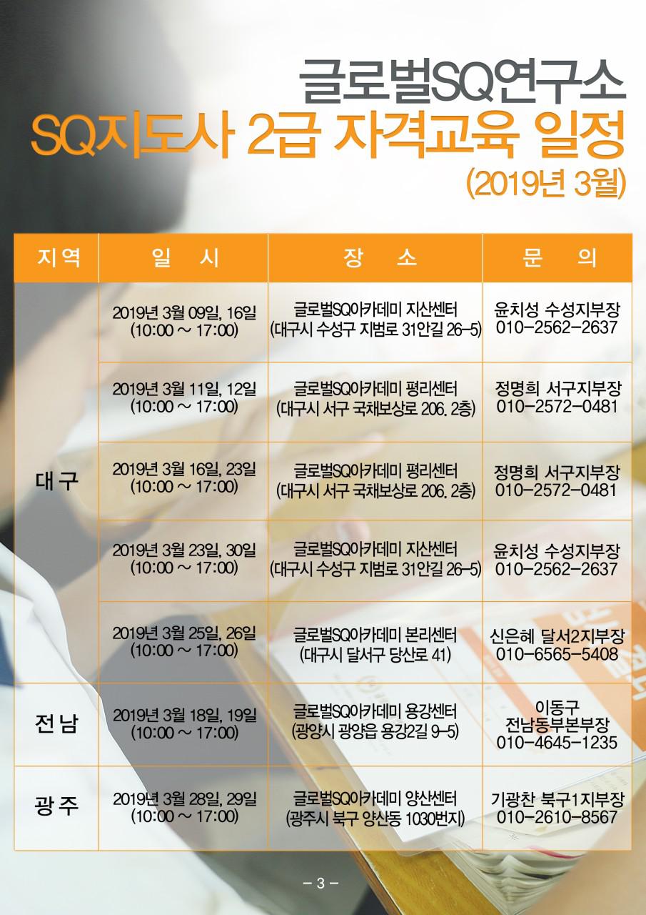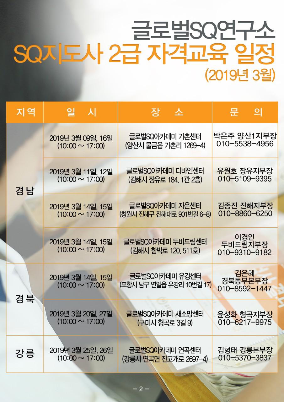 SQ지도사 1급, 2급 자격교육 3월 일정을 다음과 같이 공지합니다.